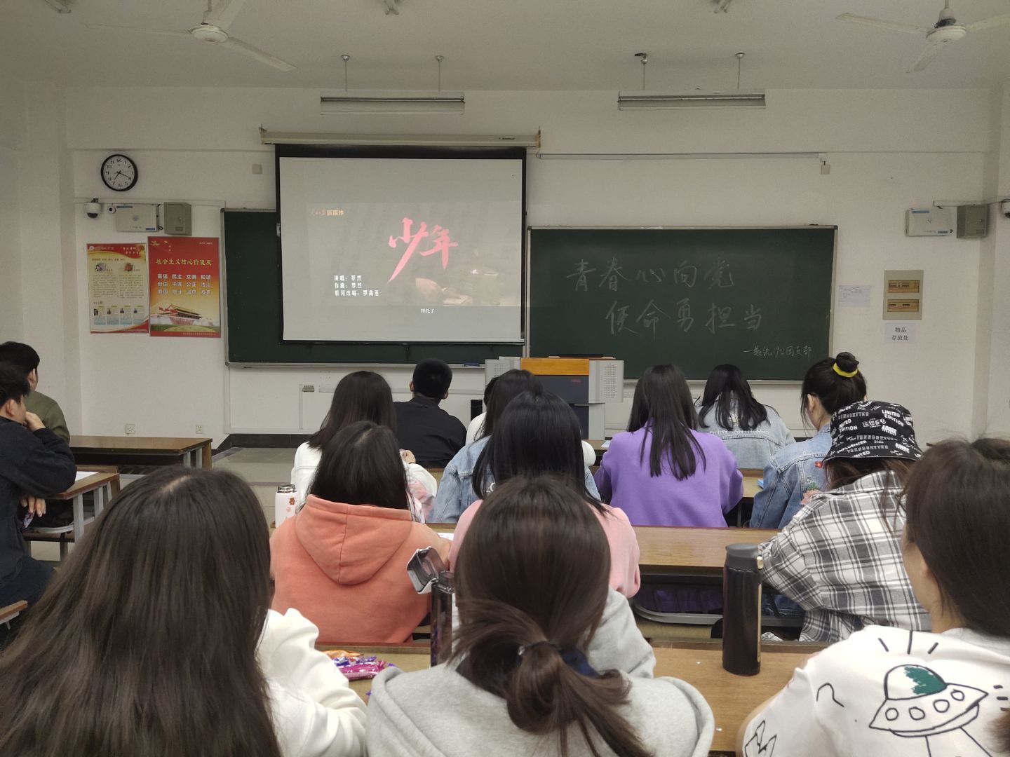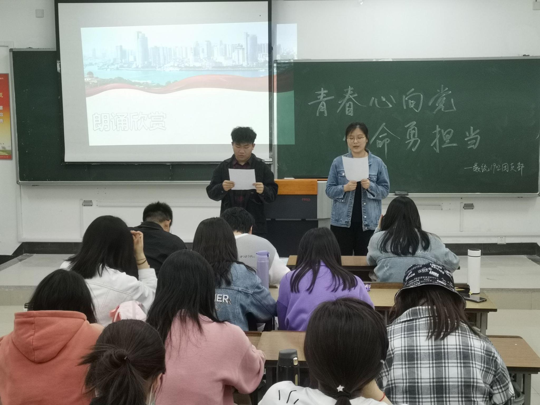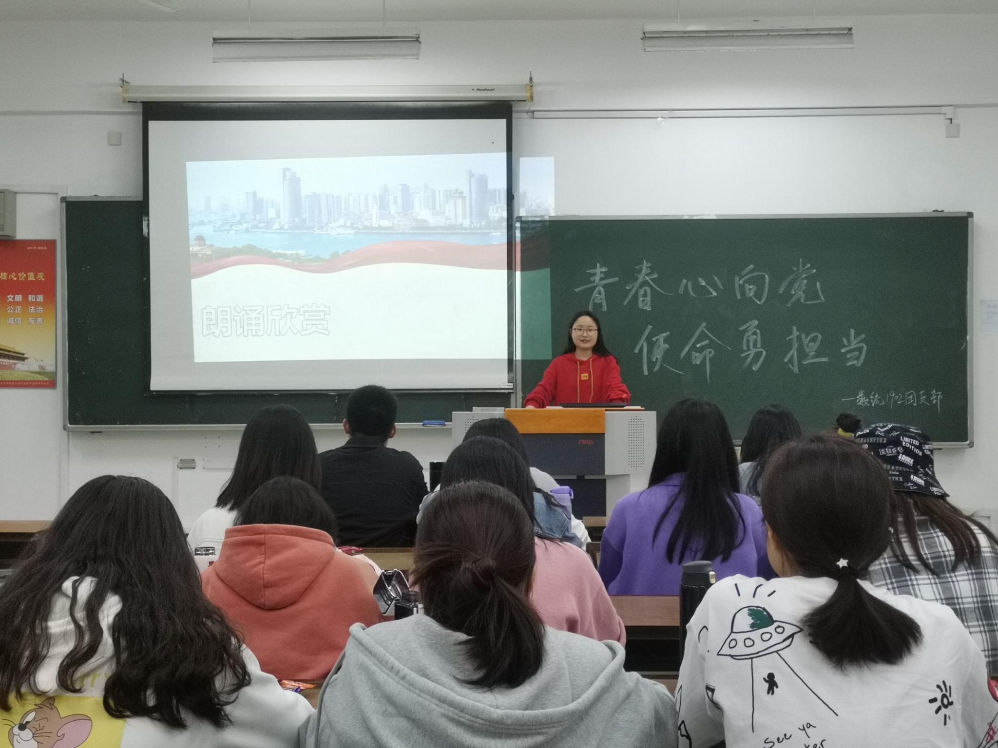 翔宇网4月29日电(记者 刘祈岑)为庆祝建党100周年,增强同学们的爱国主义精神。4月28日晚,数统学院1902班在理南214举行了“青春心向党,使命勇担当”主题团日活动。