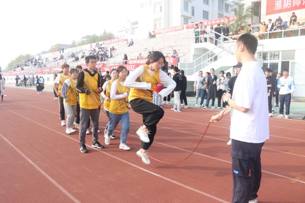 114日上午,随着裁判一声令下,跳绳下饺子比赛开始。面对翻飞的长绳,远动员一个个井然有序、身轻如燕地跃过长绳。运动员们动作熟练、配合默契、节奏稳健,在近乎完美地配合下,队伍像条盘旋的巨龙,在绳下飞舞。最后,数统学院一分钟共跳了230个,成功在跳绳下饺子项目蝉联冠军。