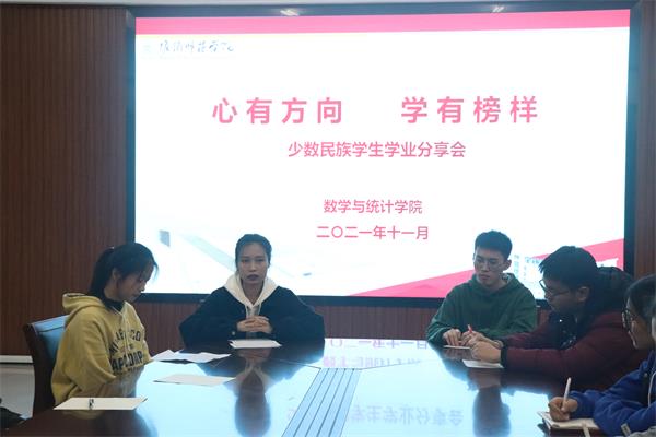 翔宇网11月11日电(记者 刘小琰 刘萍)为帮助少数民族学生更好适应学校生活,营造良好学习氛围,数统学院于11月11日晚在理北305召开少数民族学生学业分享会,辅导员王白丽老师主持分享会。