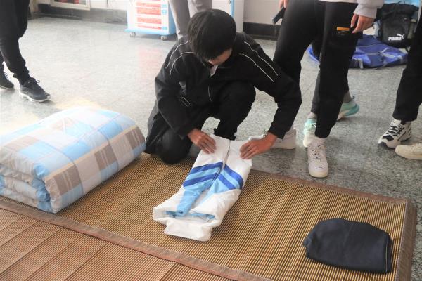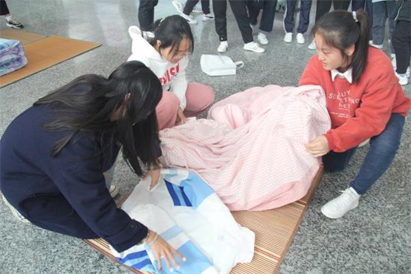 比赛过程中,同学们积极热情,全身心投入比赛。随着裁判一声令下,同学们开始了紧张的比赛。叠被子的参赛者首当其冲,将被子展开、折叠、压实;叠衣服的参赛者也迅速将校服整理好、摆放好;围观群众热情高涨,为参赛者们加油鼓劲。比赛气氛在围观同学的赞美呐喊声中一度高涨。评委们最终通过参赛者的表现给出公平的分数。