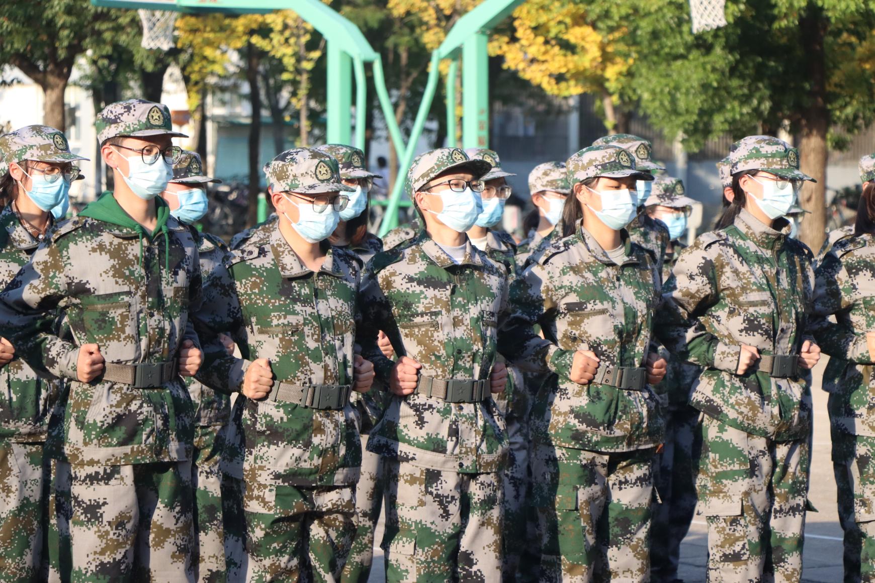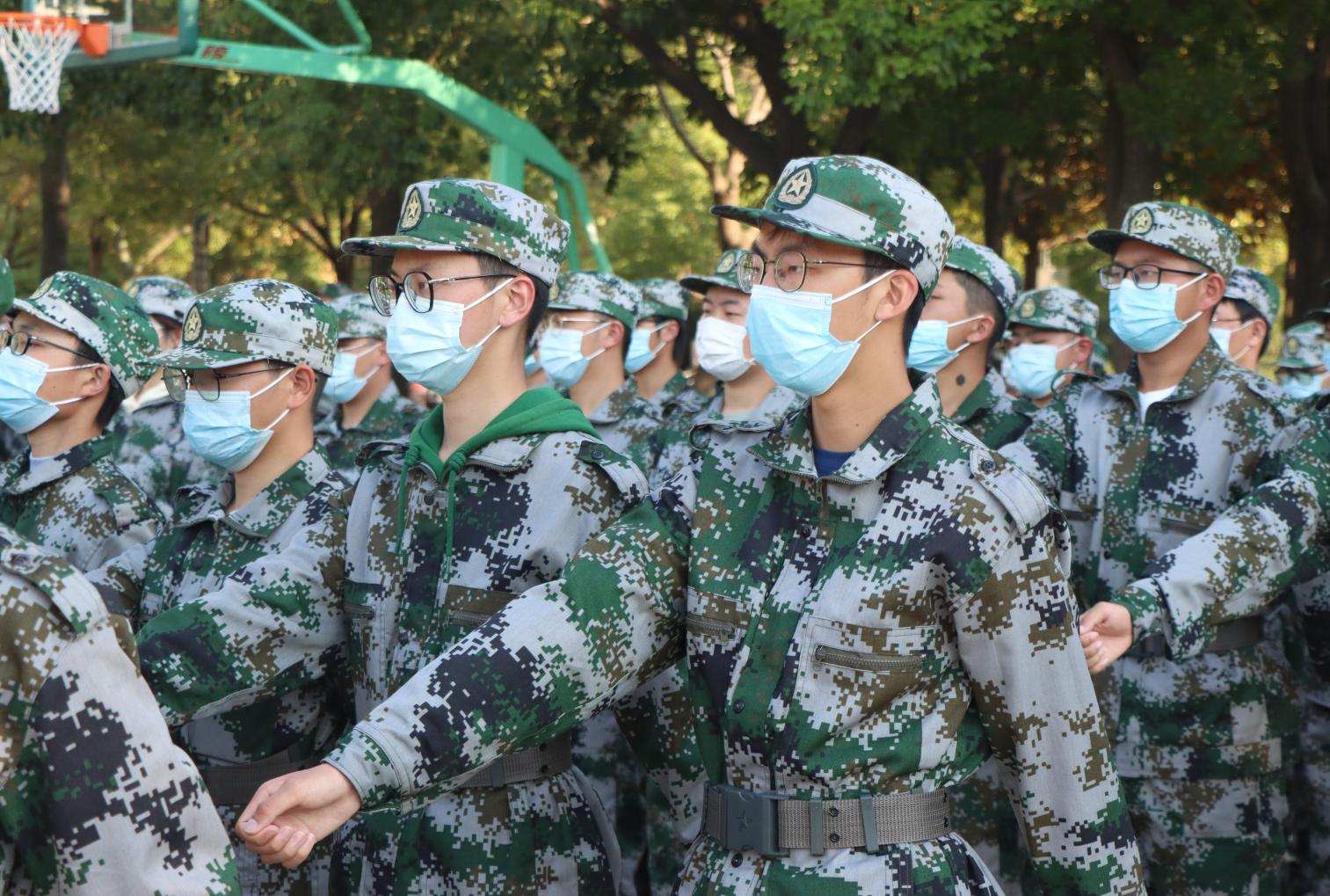 头顶艳阳,脚踏大地,绿茵场上一排排静若立松的身影定格成一幅明媚的画卷,不同的队列里相同的是那迷彩服映衬的刚毅。汗珠挂在眉角,悬在指尖,新生面对时不时发威的骄阳,在变化多端的气候下,在军训的严格磨砺下,新生们没有退缩,没有畏惧,而是选择坚守在操场上,用嘹亮的口号与坚定的步伐证明着自己。少年意气,比傲秋霜,离开高中校园略显稚气的他们,通过军训的洗礼,成为更加优秀,更加坚定的自己。