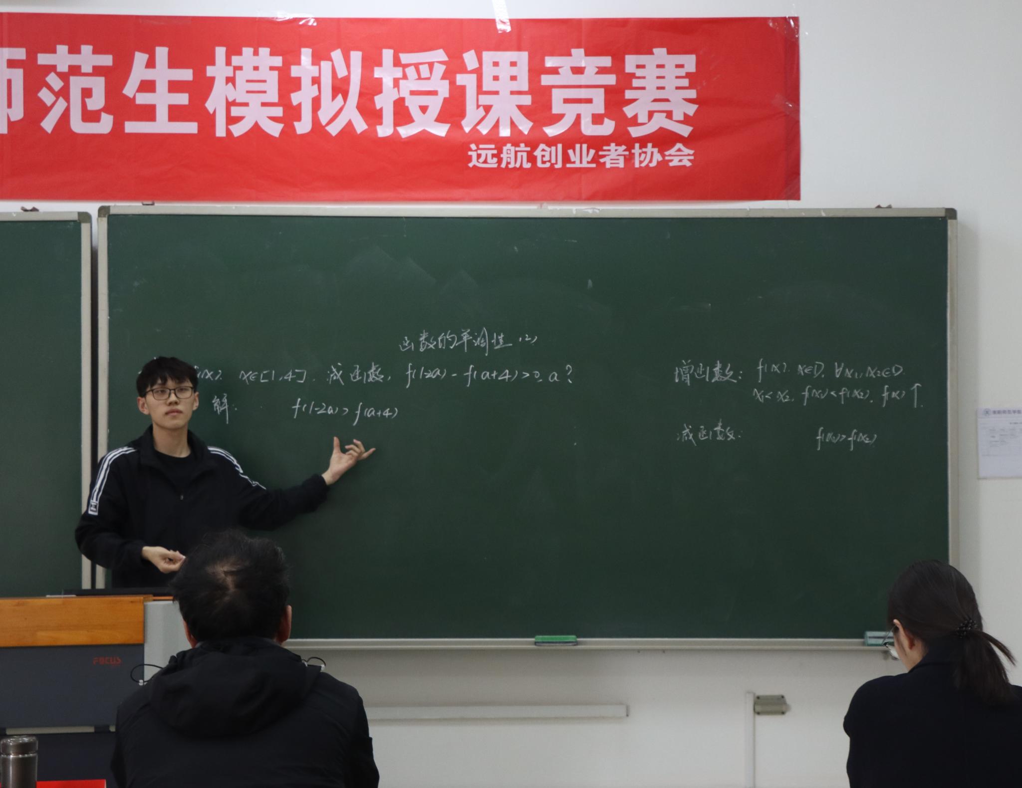 翔宇网4月14日电(记者 司马程 朱心怡)为提高数统学院师范生专业技能和教学水平,数统学院于4月13日下午两点在理工楼南115与117两个教室举行了“面面俱道”师范生模拟授课大赛,20级和21级50余名师范生代表到比赛现场观摩。