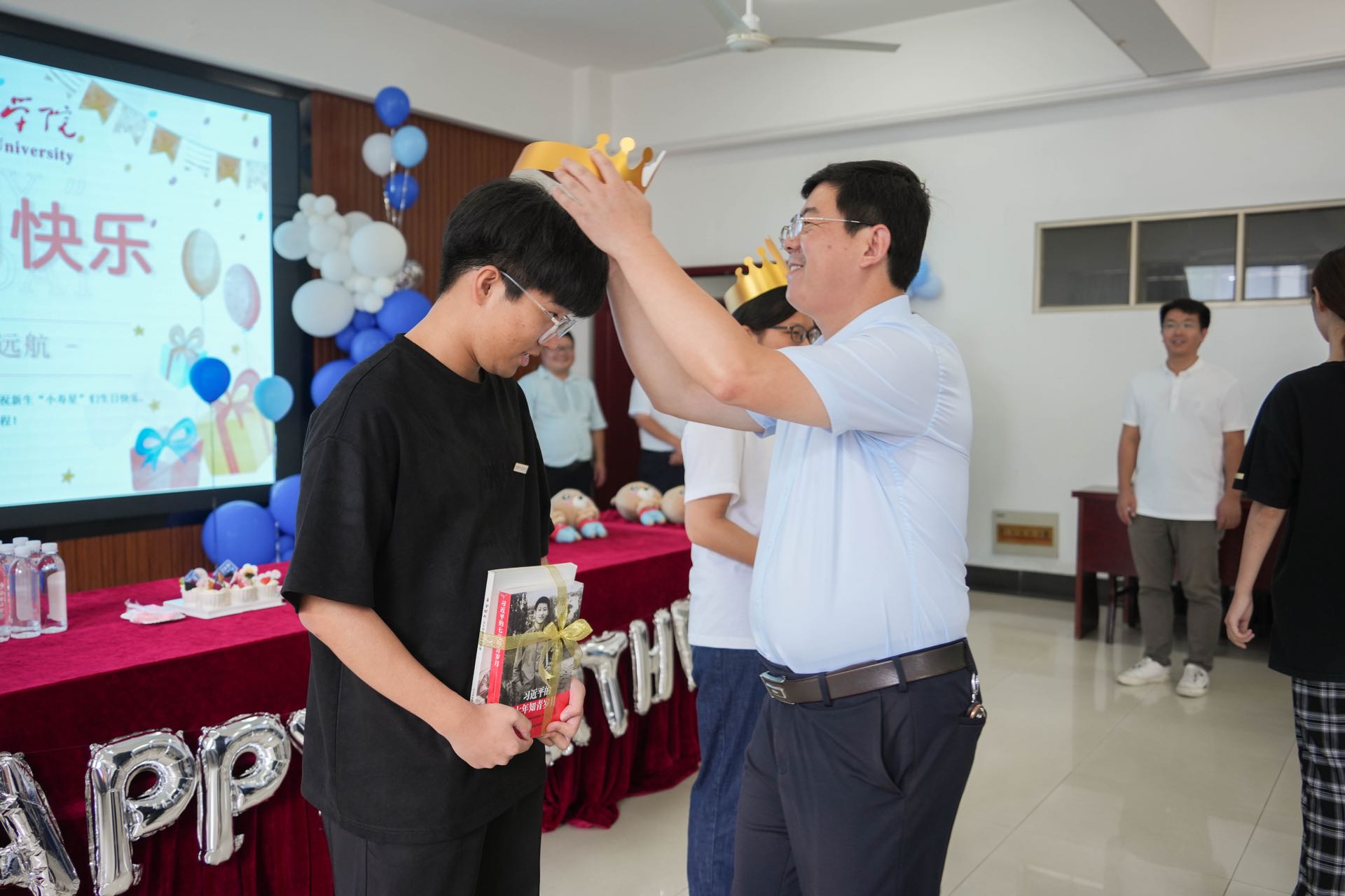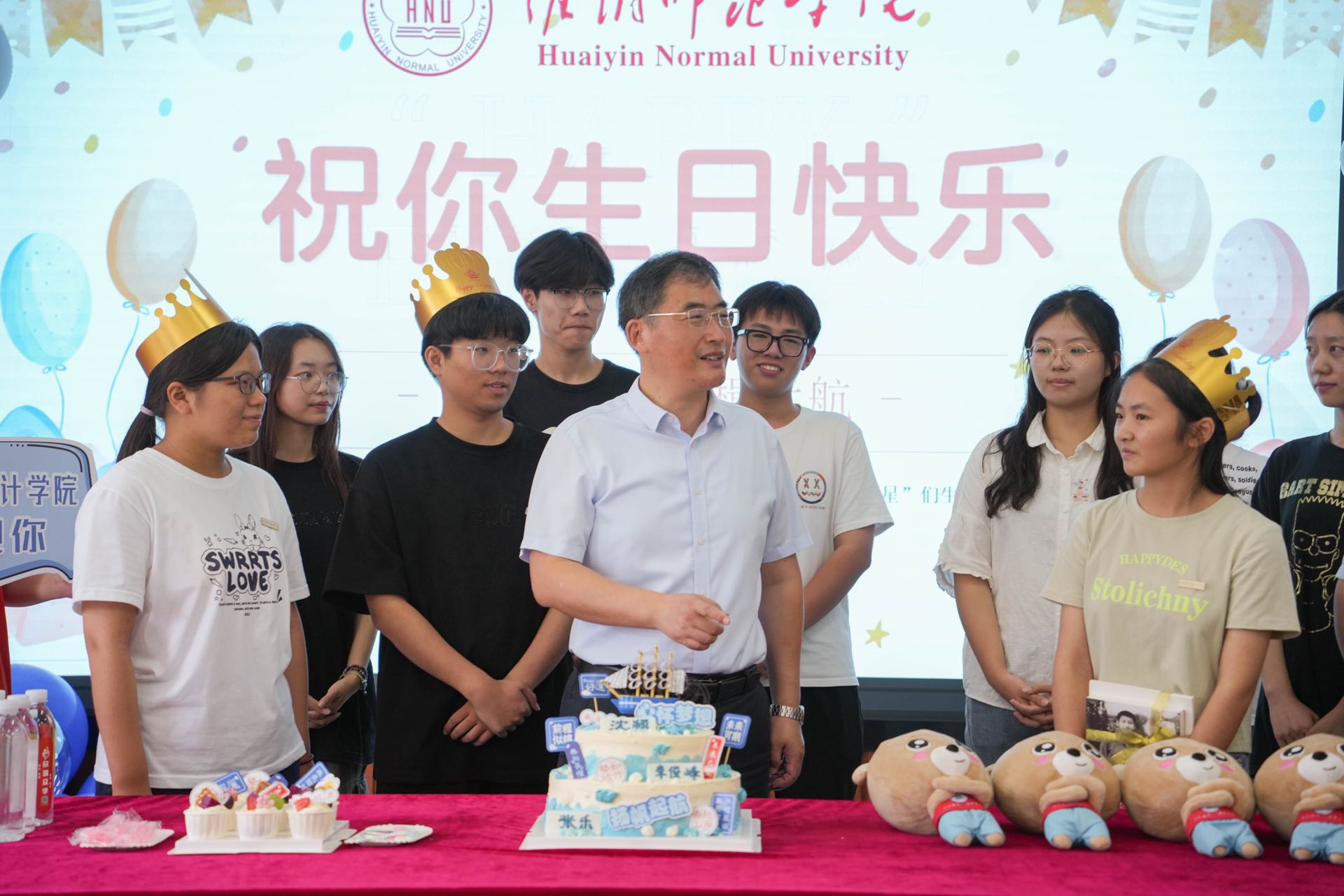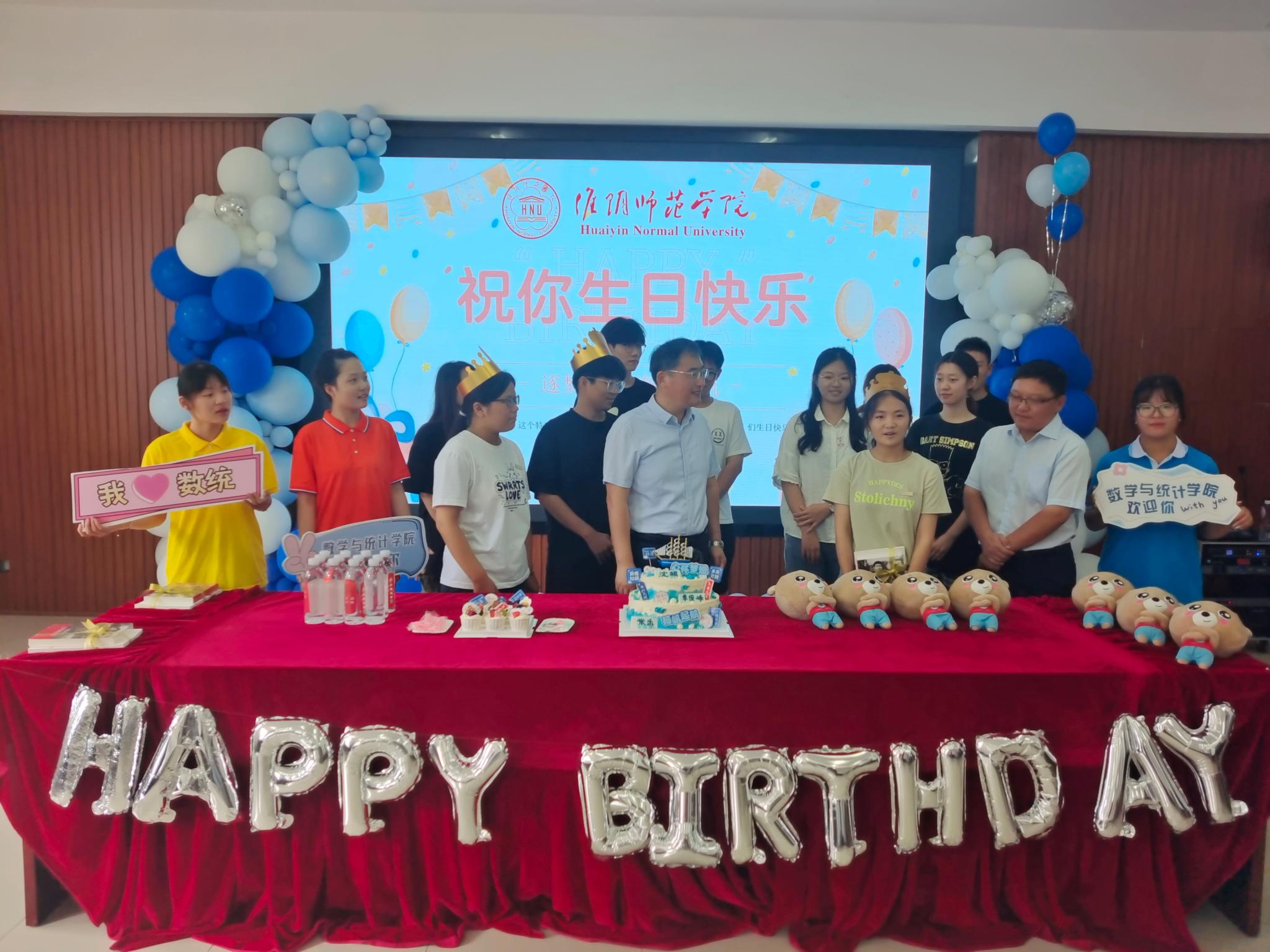 9月10日,是2023级新生报到的日子,学校到处洋溢着“萌新”们的欢声笑语。在有条不紊的迎新过程中,一场暖心的生日会也拉开序幕。数统学院为3名当天过生日的新生送上了一份特别的“成人礼”,以独特的方式欢迎他们加入淮师数统学院大家庭。校党委书记尚洪波、副校长闫超栋、党办校办、党委学生工作部相关负责同志和学院党政领导、师生代表一同到场参与活动。