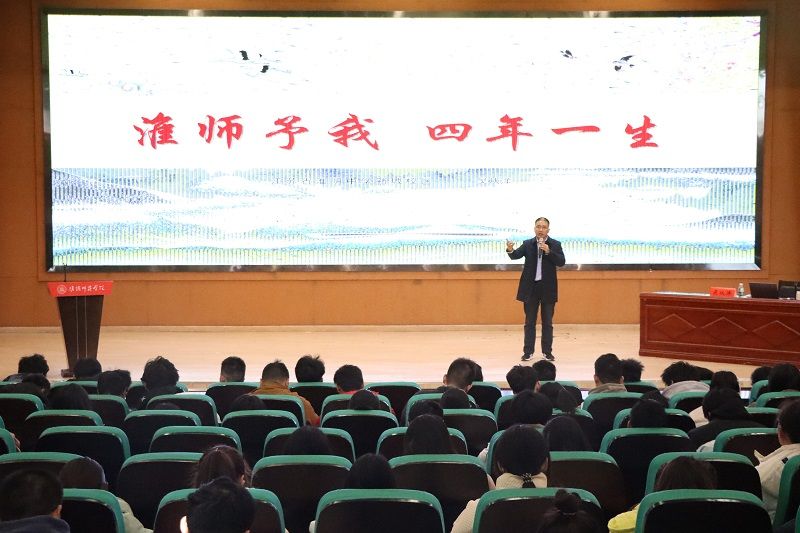 11月19日是数统学院校友集中返校日,各位校友如约而至。1997级优秀校友、淮阴中学教育集团新城开明中学校长吴从洋应邀为在校师生作《淮师予我,四年一生》的专题报告。吴从洋副校长与2023级新生分享了自己的校园生活和工作经历,并寄语他们珍惜当下,提高自身综合技能;明确规划,把握人生发展方向;不断学习,支持未来多样选择。在互动环节中,他就大学规划、行业背景、面试技巧等方面分享自身感悟,帮助同学们更好地规划大学生活。