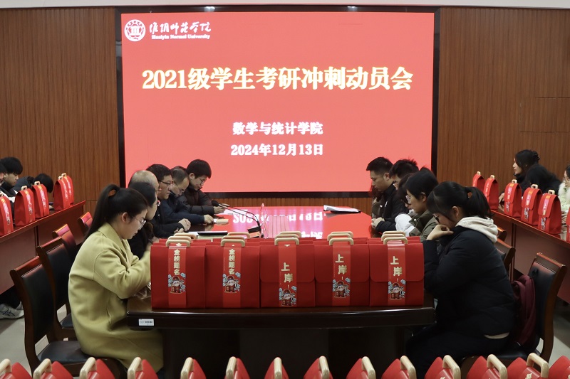 为缓解考研压力和焦虑,为考研学子带来关爱和温暖,激发考研热情,12月13日下午,数统学院于理北315会议室开展2021级学生考研冲刺动员会,给予考研同学有力的支持和热忱的鼓舞。学院党政领导及辅导员参加活动。