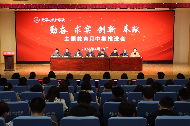 淮师新闻网4月11日电(记者 马冉)4月10日下午,数统学院在图书馆报告厅召开“勤奋 求实 创新 奉献”主题教育月中期推进会。学院领导班子成员、全体辅导员、班主任及学生代表参加会议,学院关工委常务副主任熊加兵列席指导。会议由学工办主任吴以立主持。